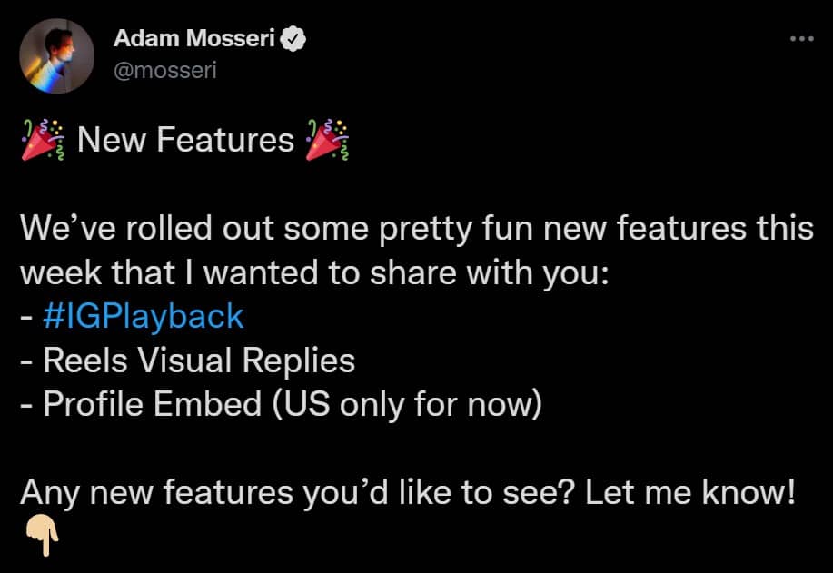آدام موسری (Adam Mosseri) مدیر جدید اینستاگرام، این خبر را در تازه ترین توییت خود منتشر کرد و از کاربران خواست تا ایدههای خود را با او در میان بگذارند.