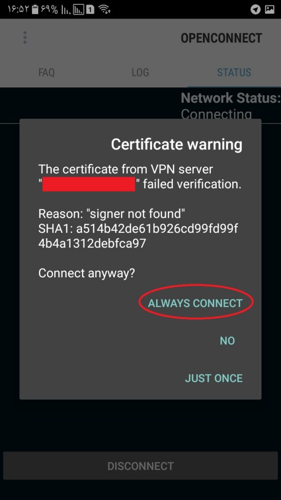 ۱۱ – در این مرحله با موفقیت به سرور سیسکو وی پی ان ابزار اتصال پیدا کردید. و از این به بعد می توایند بدون محدودیت کلیه سایت های اینترنتی و برنامه های موبایلی خود را باز کنید.